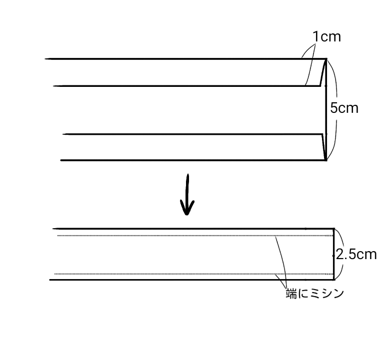 ⑪スカートの裾を三つ折りしてミシンをかける(三つ折りミシンとは)。