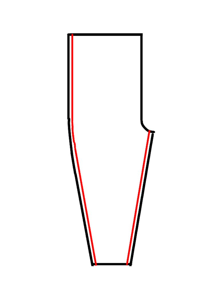 2枚の股ぐりを縫い合わせる。補強のために下の部分は二重に縫う。2枚一緒にロックミシンをかける。