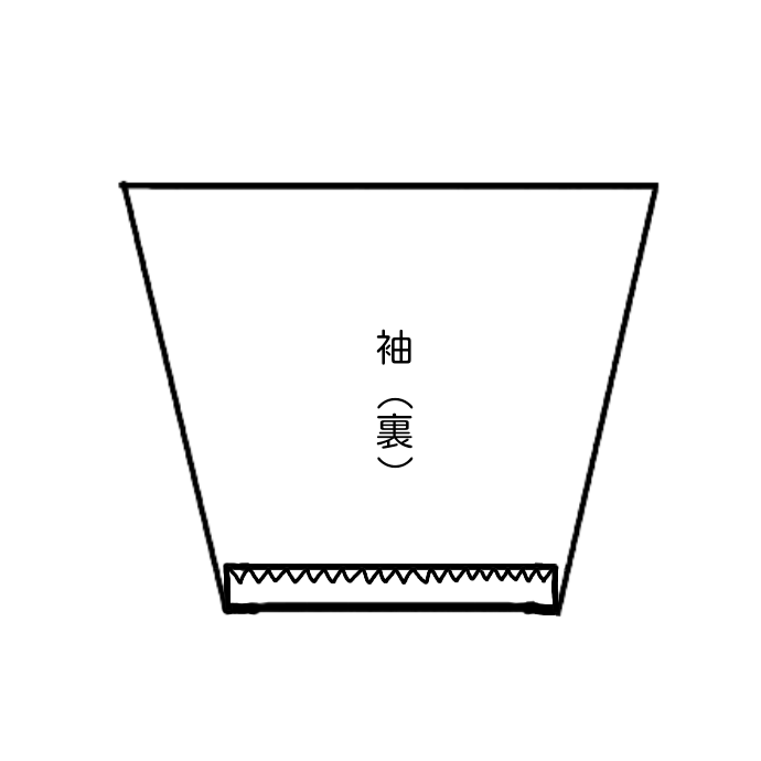 ②袖裾にロックミシンをかける。袖裾を出来上がり線で折り、アイロンをかけて折り目をつけておく。