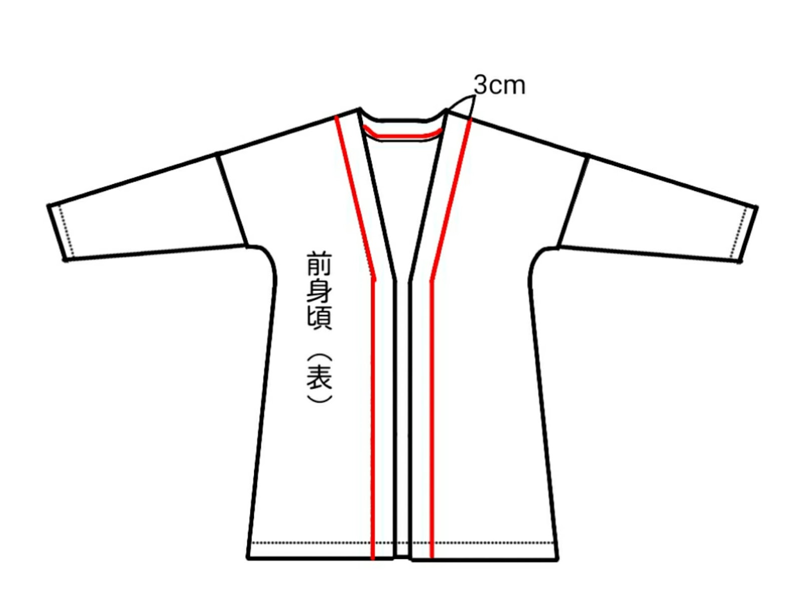 襟ぐり以外すべて直線なので簡単です。1日~2日で完成すると思います。