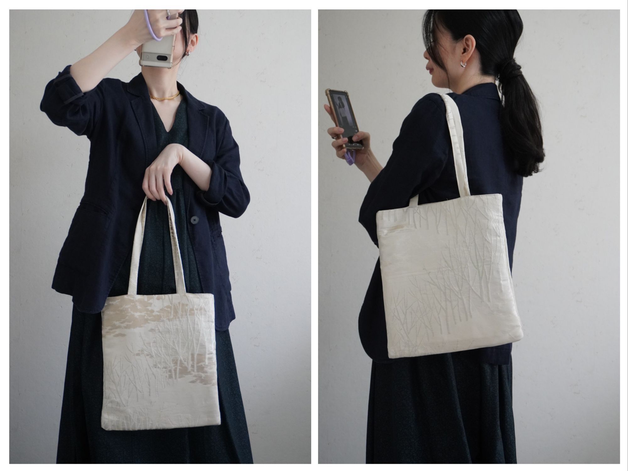 初めて帯でリメイクをしてみましたが、帯自体がきれいで、布に触れているだけでも楽しかったです!たくさん使おう♪