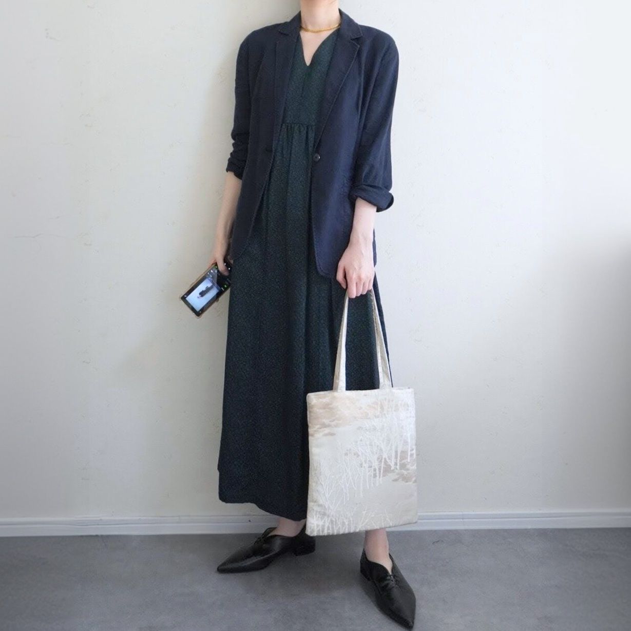 今回は着物リメイクワンピースと合わせました。帯バッグは着物リメイク服と相性抜群ですね。