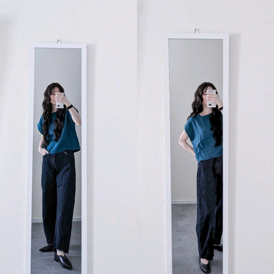 襟ぐり以外は直線なので初心者さんも挑戦しやすいです。ボートネックのシンプルなブラウスは着回ししやすいです。