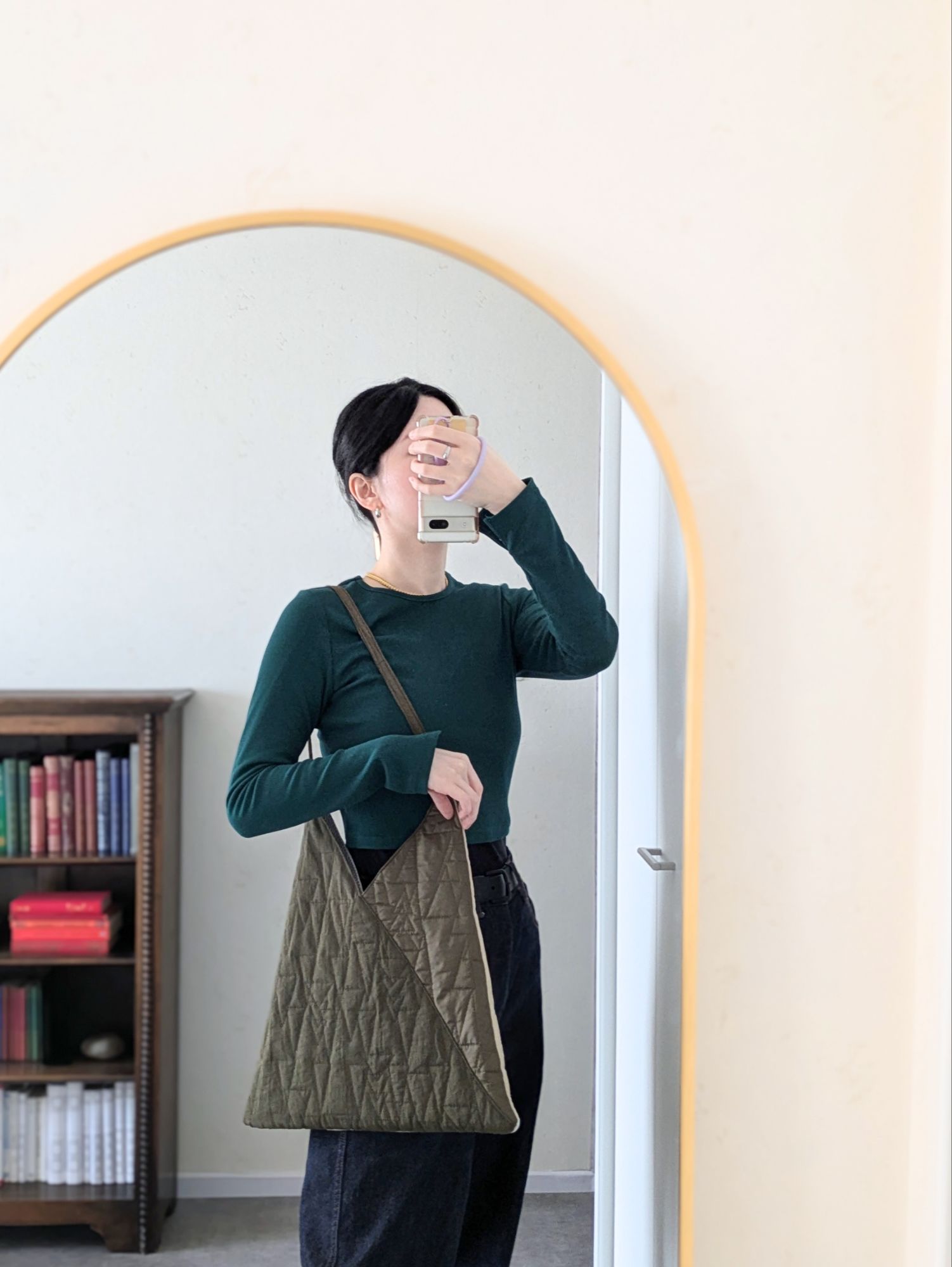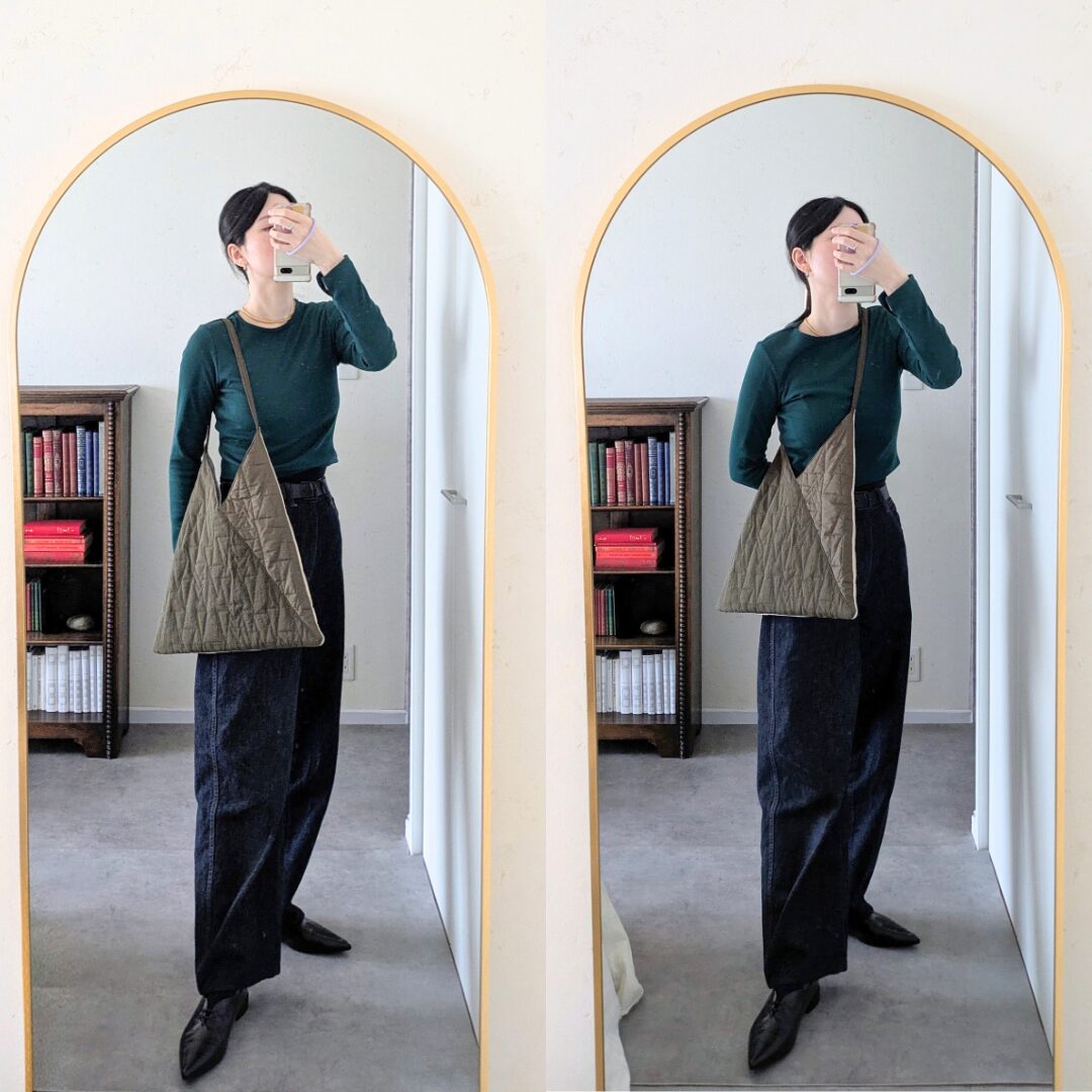 シンプルだけどキルトの風合いがおしゃれなので、コーディネートのアクセントになりますね…!男性も使えそうです◎